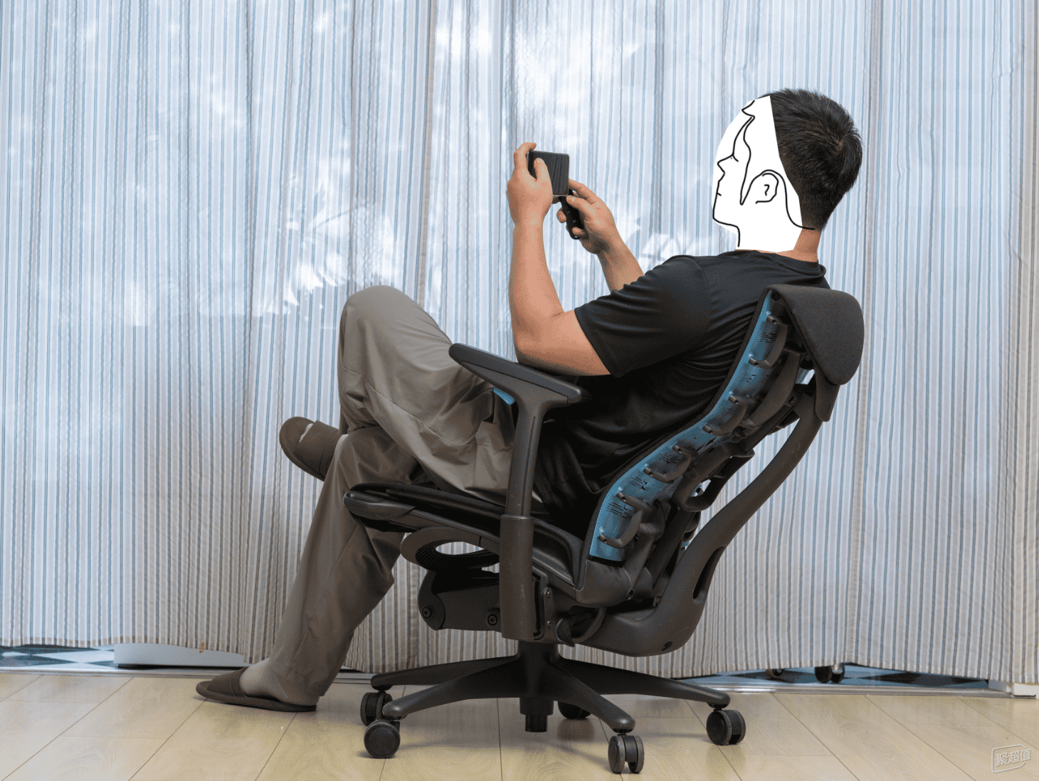 - Fixed but contoured lumbar support (贴合腰部曲线, supports the natural S-curve of your spine)